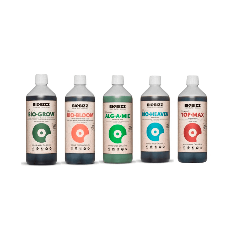 O Kit de fertilizantes orgânicos de alto desempenho é para quem quer plantar sem uso de produtos químicos. Fundada em 1992 a Biobizz é líder mundial na produção de nutrientes vegetais orgânicos de alta produtividade. O kit orgânico Biobizz é composto pelo Bio Grow, Bio Bloom, Bio Heaven, Alg a Mic e Fish Mix, quando usados em conjunto promovem a dieta nutricional ideal para as suas plantas! Conheça um pouco mais de cada um dos fertilizantes que compõe o kit Biobizz orgânico: