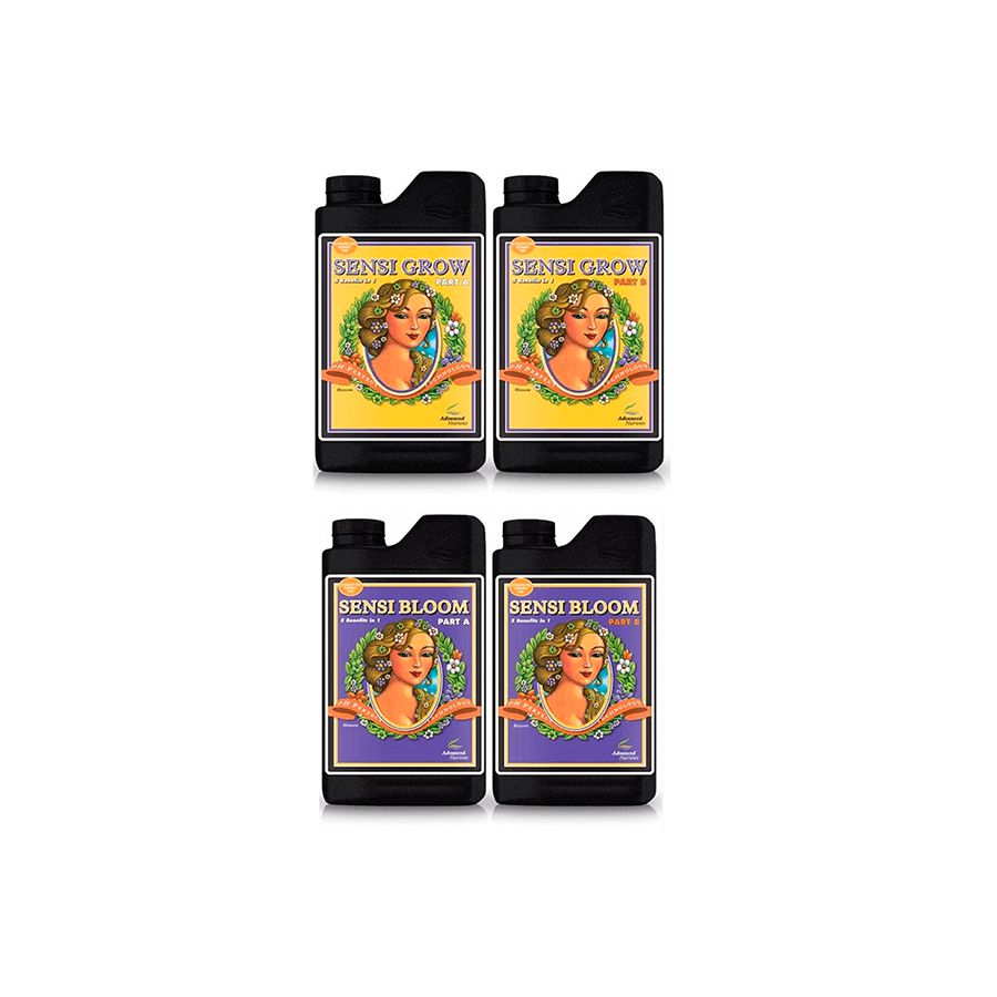 Neste kit você encontra os nutrientes base da conceituada Advanced Nutrients! Sensi Grow (parte A+B) é uma fórmula nutritiva para o crescimento vegetativo e Sensi Bloom (parte A+B), uma fórmula nutritiva para a fase de floração, extremamente fáceis de usar pois com a tecnologia PH Perfeito a faixa de pH automaticamente é neutralizada para os níveis ideais e dessa forma há um melhor aproveitamento e absorção dos nutrientes pelas plantas.