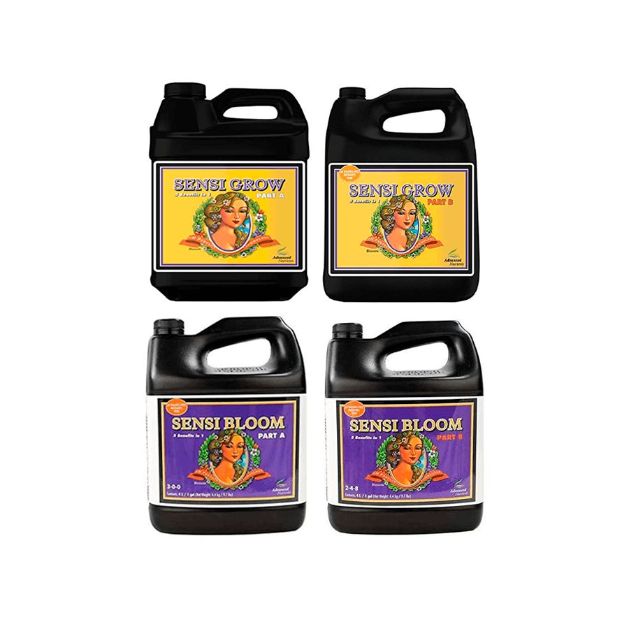 Neste kit você encontra os nutrientes base da conceituada Advanced Nutrients! Sensi Grow (parte A+B) é uma fórmula nutritiva para o crescimento vegetativo e Sensi Bloom (parte A+B), uma fórmula nutritiva para a fase de floração, extremamente fáceis de usar pois com a tecnologia PH Perfeito a faixa de pH automaticamente é neutralizada para os níveis ideais e dessa forma há um melhor aproveitamento e absorção dos nutrientes pelas plantas.