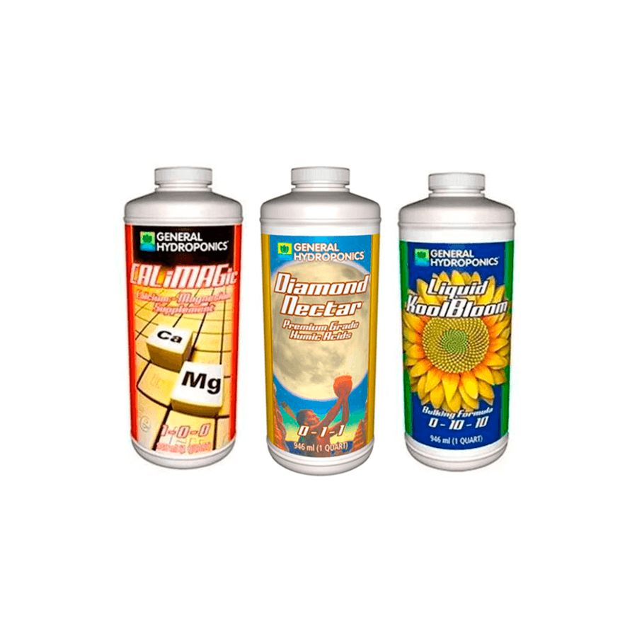 Este trio Estimulante de suplementos garantirá a você uma colheita vigorosa! Contém: 1 Calimagic, 1 Diamond Nectar e 1 Liquid KoolBloom, todos de 946ml.